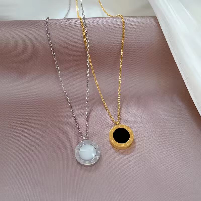316L Stainless Steel 2 Sided Shell Roman Numeral Dial Pendant Necklace For Women New Trend Girls Clavicle Chain Jewelry Gifts